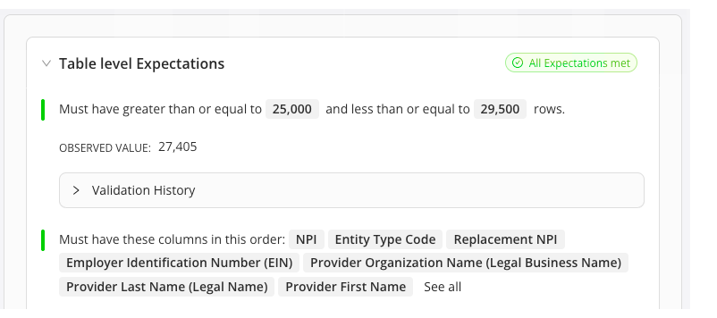 Expectations in GX Cloud tell you exactly what they’re for using plain language, start to finish. Self-explanatory names and results expressed in full sentences mean anyone can understand an Expectation and Expectation Suite on first look.